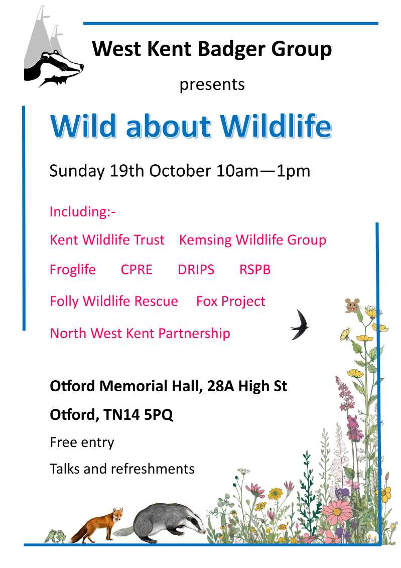 For Brocktober, the WKBG is organising its own festival of wildlife – in Otford Memorial Hall on Sunday 19th October from 10am – 1pm.